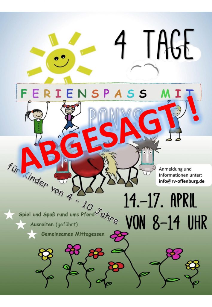 Ferien im April Veröffentlicht am 7. März 2020 von wprvadmin Aufgrund der aktuellen Situation rund um das Corona-Virus, haben wir uns entschlossen unser Ferienprogramm abzusagen. Klick, um auf Facebook zu teilen (Wird in neuem Fenster geöffnet) Facebook Klicke, um auf X zu teilen (Wird in neuem Fenster geöffnet) X Klicken, um einem Freund einen Link per E-Mail zu senden (Wird in neuem Fenster geöffnet) E-Mail Klicken zum Ausdrucken (Wird in neuem Fenster geöffnet) Drucken